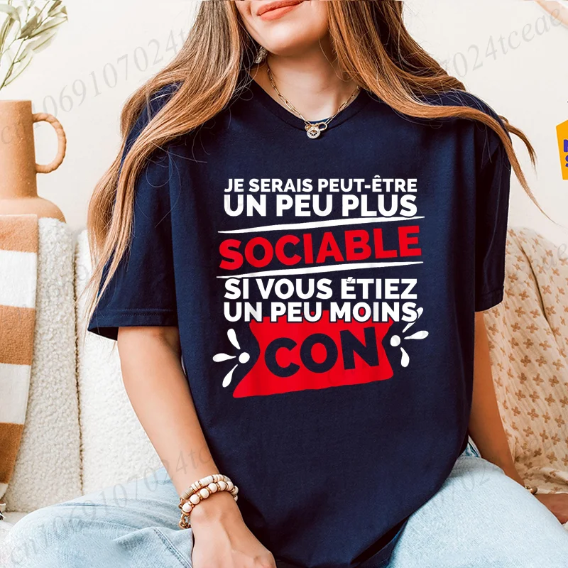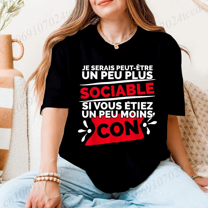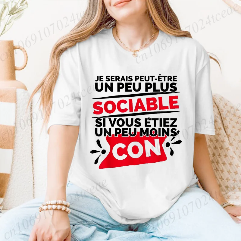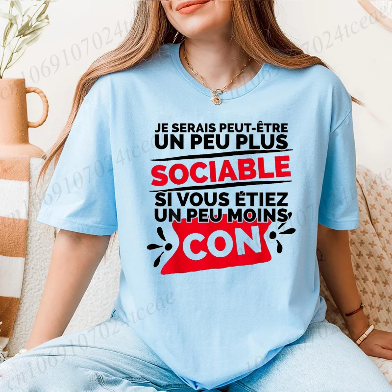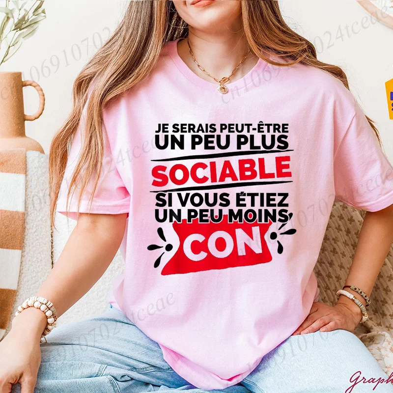 Women T-Shirt Clothing Je Serais Peut-être Un Peu Sociable Si Vous Étiez Un Peu Moins Con T-Shirts Short Sleeve Women’s Tee Tops