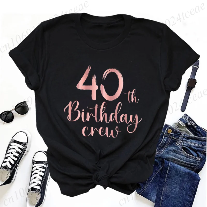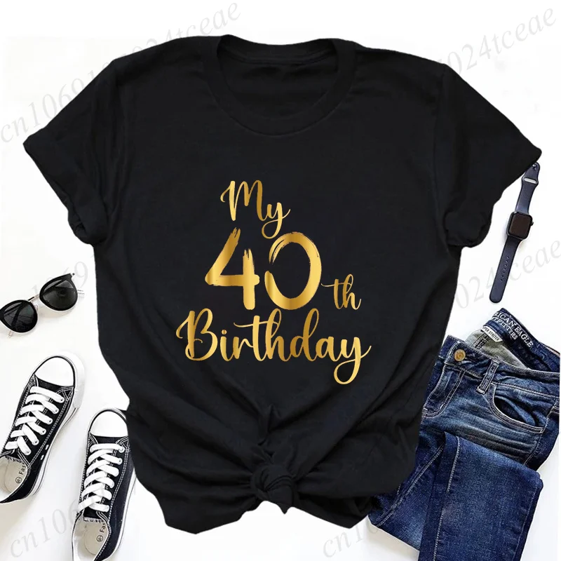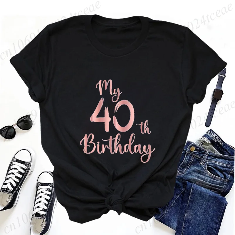 Women’s Casual T-Shirts My 40th Birthday Party Fun Printed T-shirt Casual Women’s Top Forty Birthday Squad Fashion Trendy Tops
